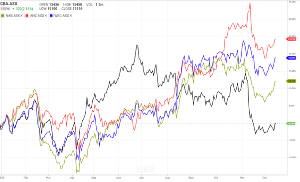 With respect to the Big Four bank shares, annual return over the year to date is summarised below: